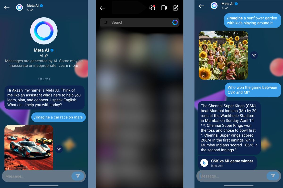 Meta AI can also generate images which is powered by OpenAI's DALL-E. To generate an image, you need to type the forward slash and write “Imagine” followed by the desired prompt. For example, you can write “/imagine a sunflower garden and kids playing around it”. However, do note that the chatbot does not fulfil any requests for images of real-life personalities. Further, all Meta-generated images will have an “Imagined with Meta” watermark to distinguish it from real images.