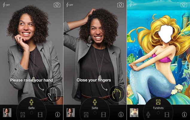 The app is good at recognising the gesture, which makes taking group photos really simple. A new update has added cutouts to put your face in "funny" backgrounds, and there's also a photobooth mode now, so you can take multiple pictures and stitch them together.