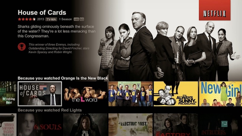"TV has always been about video, so it was very appropriate to the context, unlike on mobile," says Jaffe. "When we got on to TV, the interface," he pauses to show a picture of the original Netflix TV interface, "wasn't really great. There was too much going on, it was too bright. So it took us a little time to optimise for remotes, get the colours right, the borders, we kept testing and improving."