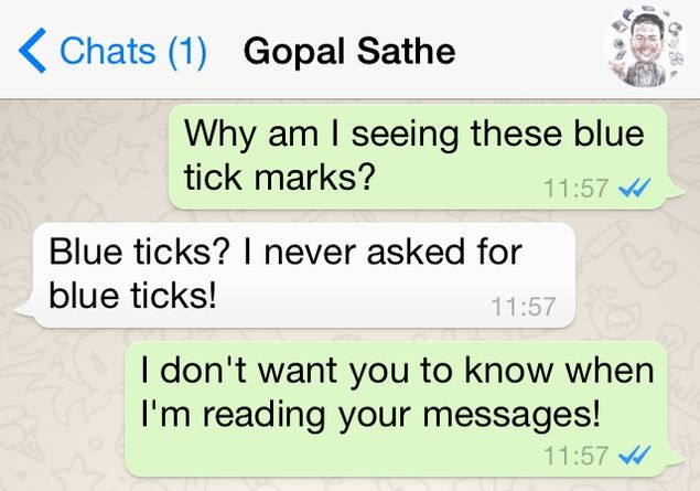 And how many times have you responded to messages with a curt "Got it", just to acknowledge that yes, the message has been delivered. People send you a phone number to call, or share a single point of data and you waste time letting them know that it's gotten through. Sure, that's just a second or two, but it adds up through the day and WhatsApp's blue ticks just saved you a bunch of time.