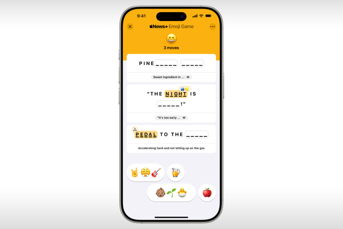 Apple News+ has added a new Emoji Game for subscribers in two countries. The launch of the new puzzle app coincides with World Emoji Day on Thursday. Users must complete three phrases to solve a puzzle, and the goal is to use as few moves as possible. Puzzles will also be updated on a daily basis, just like Wordle and other games offered by publications like The New York Times. The iPhone maker also offers access to four other puzzles.