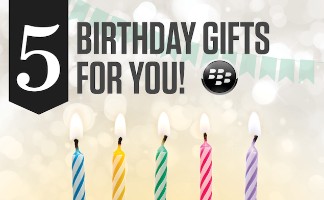 The apps can be downloaded on BlackBerry World. With the '5 Birthday gifts for you!' promotion, BlackBerry 10 device users can choose apps from Tilt, Scan to Text, InstaVenue, Uno, Doodle Jump.