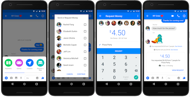 Users can also request payments from the group right from chat, Facebook revealed in a blog post. Users can enter the amount they want to request from each person or the total amount to be divided evenly by the group members. They can also mention in a note about what the money is for.