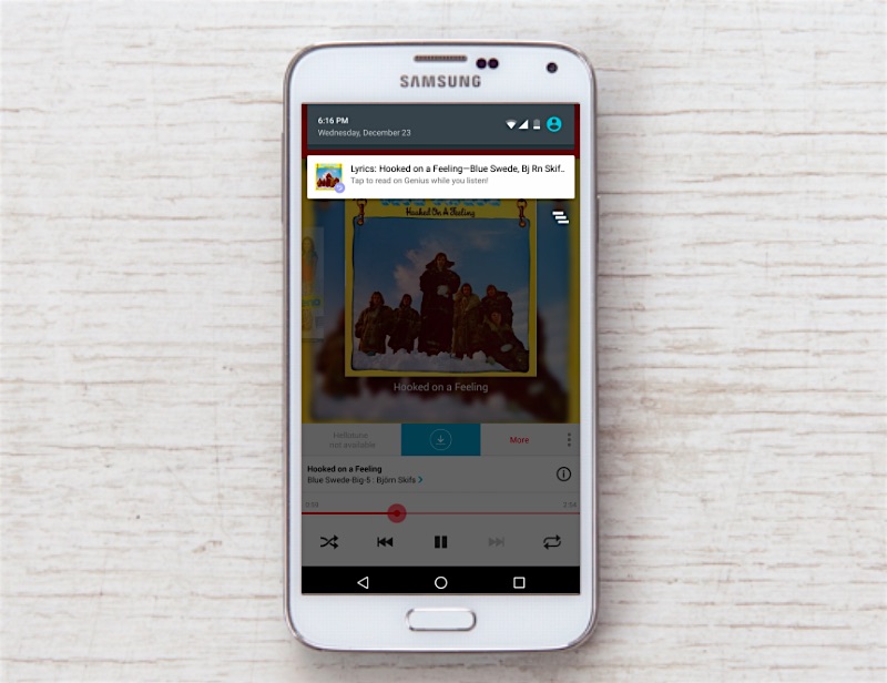 In a Google+ post, Lisa Wray, who works at Genius, laid bare the new feature, adding that it was only possible because of the openness of Android ecosystem. Genius (formerly Rap Genius), the popular service that offers lyrics of soundtracks, is now able to read the notifications of media streaming and player apps that are running audio in the background.