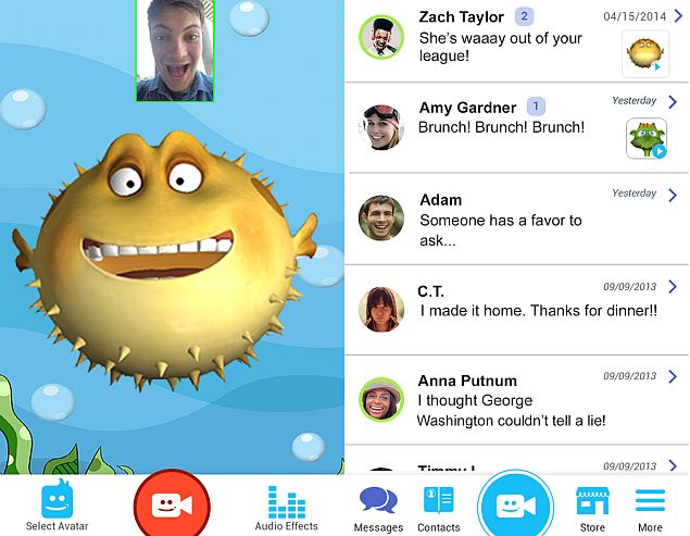 The app uses a smartphone's camera and microphone to record a short message while mapping the speaker's facial expressions onto one of several cartoon characters. The message is then sent to the recipient, who can play it, complete with the avatar's head movements, smiles and blinks.