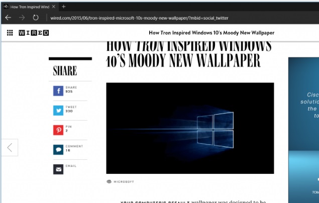 Both the Windows 10 Build 10158 and Build 10159 came with Microsoft Edge browser's new look which sports the 'e' logo. While the new Microsoft Edge browser brings several changes to the new Windows 10 operating system such as showing a site preview simply by hovering over its tab, Cortana integration, and a built in reading list among others, its logo definitely looks inspired by the company's old but legendary Internet Explorer.