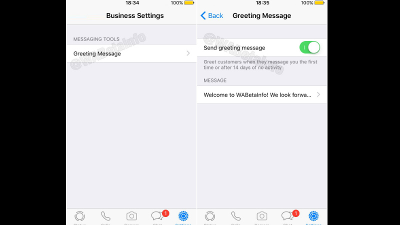 As spotted by the tipster, WhatsApp is working on enabling the 'Greeting Message' feature that sends an automatic message to new customers, or after 14 days of no activity with a customised message. Many features like Labels and Quick Replies are missing in the work-in-progress iOS Business app, and it's likely that WhatsApp won't release it till the iOS Business app has all the features that counterpart Android Business app has.