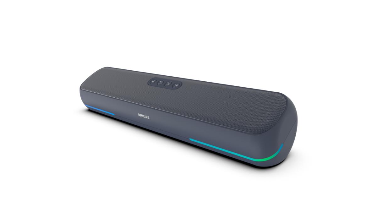 The Philips TAB4120 Mini Soundbar is claimed to deliver up to 20W maximum output and supports RGB lighting modes, Bluetooth connectivity, and up to eight hours of playback. The compact soundbar also includes true wireless stereo support, allowing two units to be paired together for an expanded stereo audio experience.