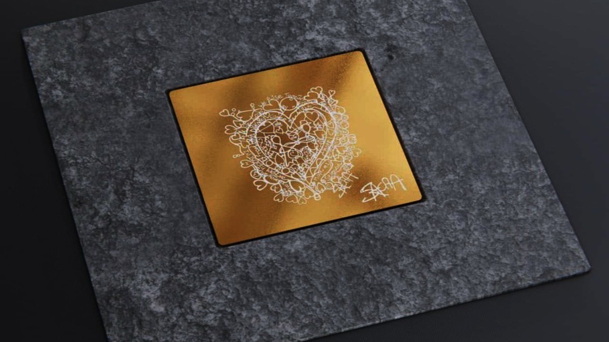 The artwork that is being readied for the moon is titled “We Rise Together — By the Light of the Moon”. A male and female human figure is being engraved on a gold slab. The figurines will be surrounded by 88 hearts, which is from where, the number of inspired NFTs has been chosen to be 88.