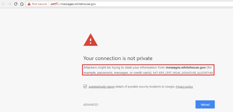 The bad news is that this means at least parts - such as messages.whitehouse.gov - of the White House's website aren't secure at the moment. "With an invalid certificate, anyone can monitor your traffic, see what you're reading even if you're not logging in and see which pages [you're] spending time on," said George Avetisov, chief executive of the cybersecurity firm HYPR Corp. He also said, if the most visible parts of the White House's site aren't being properly monitored, it also raises questions on some of the more technical parts as well.