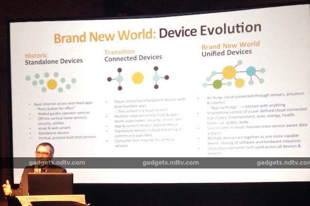 At the event, Jou talked about an example where two smartphones in the same area with bad cellular reception can make use of the combined strength of the radios inside each other to boost the network. Another example that MediaTek highlighted, pictured a situation wherein the microphone inside a smartphone can be used as a voice controller to search content inside a smart TV. In a sense, different devices can use both - the hardware and software - inside each other to communicate with each other or the outside world.