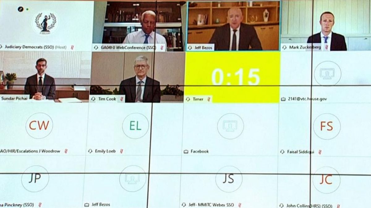 CEOs Tim Cook of Apple, Jeff Bezos of Amazon, Mark Zuckerberg of Facebook and Sundar Pichai of Google were grilled for more than five hours in the unprecedented joint appearance -- by video -- before a House of Representatives panel investigating market dominance.