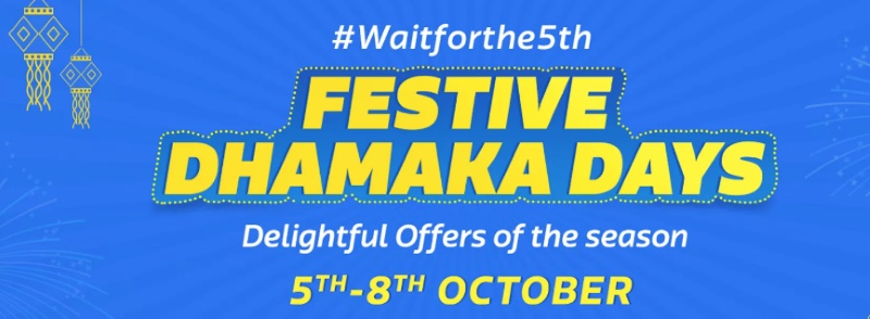 Flipkart announced the dates of its next big sale - named Festive Dhamaka Days - just a day ahead of the second Amazon Great Indian Festival sale. Predictably, the Flipkart sale dates will clash with those of Amazon's, though there are not many details about the deals and discounts that the Indian e-commerce startup will be offering. On the other hand, the Amazon sale is in full swing, with discounts on over 10 crore products. However, consumers won't have to wait too long as the Flipkart sale starts at midnight on Thursday, October 5 and runs till Sunday, October 8.