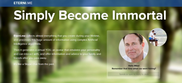 "Eterni.me collects almost everything that you create during your lifetime and processes this huge amount of information using complex artificial intelligence algorithms," explained the information available on the website.