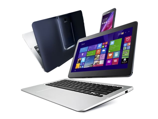The Asus Transformer Book V is a Windows 2-in-1 laptop with a detachable Android phone that can function in five different modes. Sounds confusing? Let us clear it for you. Firstly, there is the 12.5-inch tablet/laptop hybrid with a detachable keyboard. It runs Windows 8.1 on Intel Core architecture. The 5-inch Android 4.4 (Kitkat) phone runs a 64-bit Intel Atom quad-core processor with LTE. Docking the phone displays Android interface displayed within Windows 8, and it can also be switched to a full Android 4.4 (KitKat) tablet interface. As a tablet/ laptop hybrid, the Transformer Book V can run both Windows 8.1 and the latest Android.