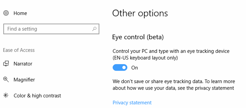 Microsoft has mentioned in its blog post that the Eye Control feature requires a compatible eye tracker, like the Tobii Eye Tracker 4C. When users turn on Eye Control, a launchpad appears that allows then reads eye movements and gives access to mouse, keyboard, and text-to-speech tool. Users will also be able to reposition the UI to the opposite side of the screen." There is also an Eye Control interaction model to interact with the Windows UI, where looking at the UI will activate it along with voice guidance. Eye Control only works with the US English language keyboard support initially, with plans to add more keyboard layouts later.