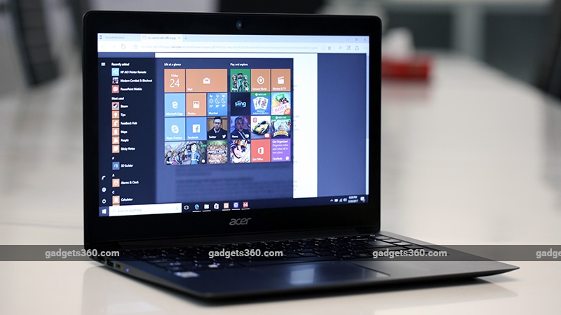 The palm rest area is spacious and so is the trackpad, which doesn’t really get in the way while typing. The chiclet keyboard is well spaced out and the travel of the keys don’t feel to spongy. The keyboard area is carved out of the same aluminium block as the palm rest so there’s no issue of flex here. Some of keys could have been designed or placed better. For instance, it’s easy to hit the power button by mistake since it’s placed in the same cluster as the rest of the keys and the size of the Up/ Down direction keys could have been bigger. There’s a single level of backlighting, which is even for all keys. Acer has also thrown in a fingerprint sensor which is useful for Windows Hello authentication. There are downward firing speakers placed below the laptop.