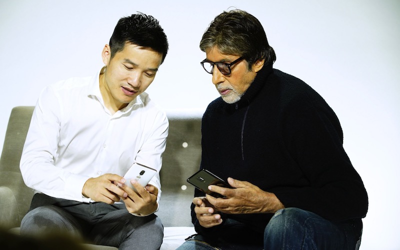 OnePlus CEO and founder Pete Lau (left) with actor Amitabh Bachchan