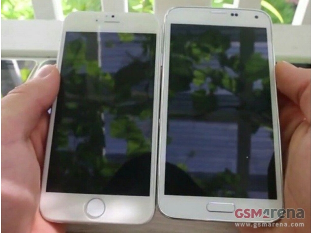 After being compared with the Apple iPhone 5 on Thursday, a new leaked image posted by GSMArena shows the alleged iPhone 6 pictured beside the Samsung Galaxy S5.