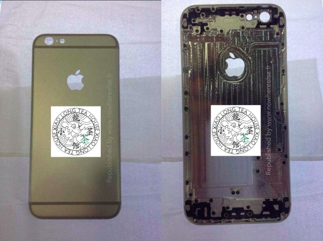 The new bunch of leaked images from the rear shell of the alleged iPhone 6, while not offering much detail about the iPhone 6's rear, dop show two cut-outs at the top of the purported iPhone - one, for housing the rear camera with flash, and the other, for the Apple logo branding in the middle, in-line with a recent leak. Notably, one of the leaked images from alleged iPhone 6 also shows the inside of the shell.