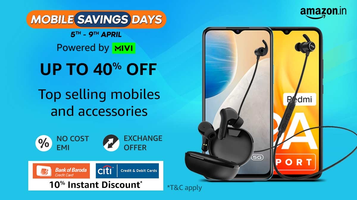 Amazon Mobile Savings Days powered by Mivi, and TV Savings Days sales are now live. The e-commerce website says that customers can get up to 40 percent off on top selling smartphones as well as accessories from Mivi, Samsung, OnePlus, Xiaomi, Realme, Redmi, iQoo, among others. It is also offering up to 55 percent off on top selling Smart TVs from Redmi, OnePlus, Samsung, and Sony. Amazon says that the sale is now underway and it will be live till April 9.