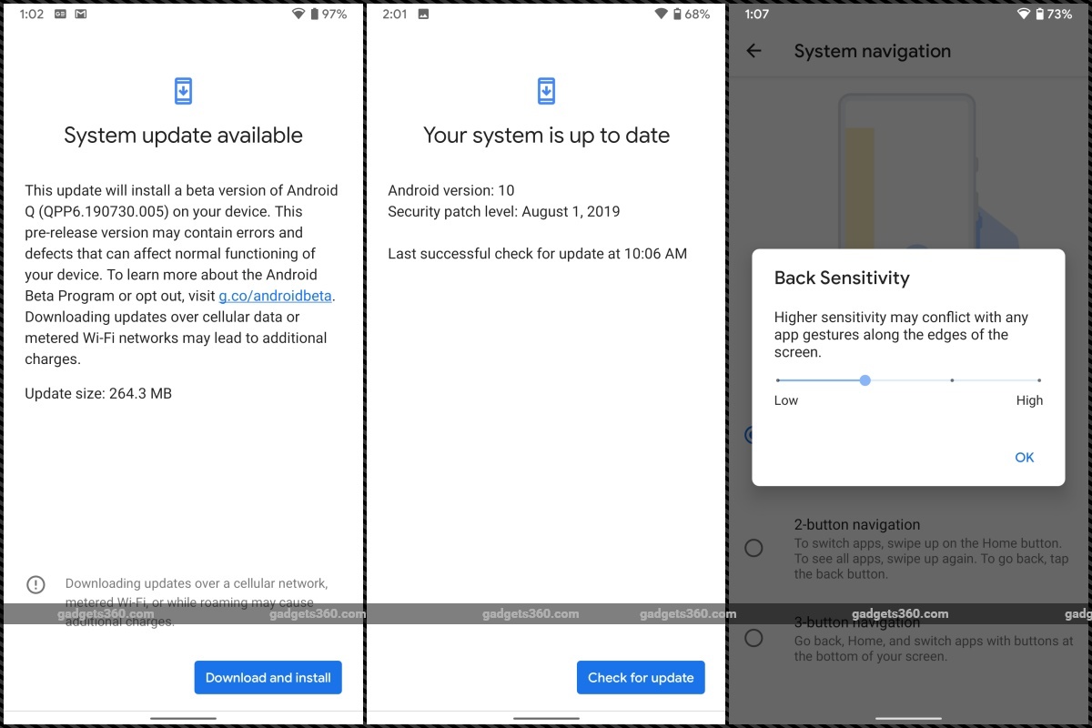 According to a blog post by the Android team, Android Q Beta 6 includes refinements for the gesture navigation. It brings a new sensitivity preference setting for the Back gesture. The sensitivity preference can be found by going to Settings > System > Gestures > System navigation.