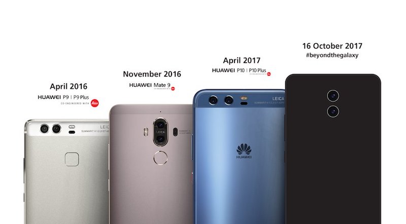 After releasing a teaser video earlier this week of the upcoming Mate 10 smartphone, Huawei on Wednesday posted a new teaser photo of the next flagship that will join the company's lineup of Leica-branded dual camera smartphones. The Mate 10 can be seen alongside the P9, Mate 9, and P10 smartphones, all of which come with dual rear cameras. The teaser also confirms that the Mate 10 will be unveiled on on October 16.