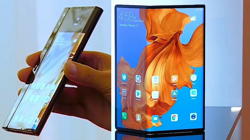 Huawei Mate X foldable smartphone, seen folded (left) and unfolded (right)