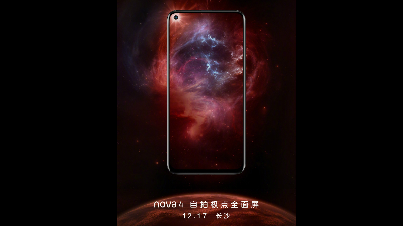Huawei has taken to Weibo to announce that the Huawei Nova 4 will launch on December 17. The smartphone will launch in China, and it will sport a true bezel-less display with no notch. For the front camera, there will be a slight hole in the screen, on the top left edge, where the sensor will be located.