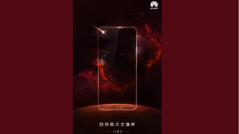 Huawei has taken to Weibo to publish the poster teaser of its new upcoming smartphone. The poster hints that the smartphone will sport a full-screen Infinity-O display-like design with a small circular cut out for the selfie camera. Apart from that, the poster reveals that the smartphone will be launched in December.