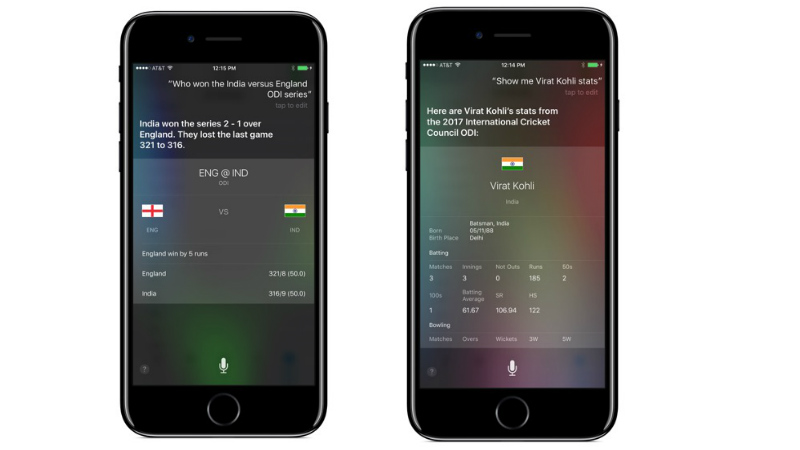 Furthermore, Siri gets the ability to show live cricket scores from matches of the IPL and the ICC. The digital assistant will give you real-time ball-by-ball update of the most popular game format in India, a handy feature for all cricket fans in the country. You can even ask Siri other IPL-related questions like 'What are the 2016 IPL rankings?', 'Who leads the IPL in runs scored?', 'Show me Virat Kohli stats', 'When is the next Cricket match?', and more, and Siri will reply immediately. Match schedules and player rosters can also be checked.