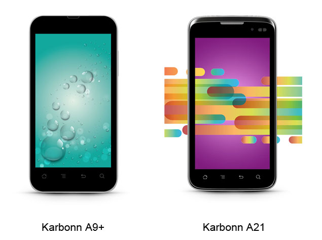 Both dual-SIM devices have more or less the same specs with differences in screen sizes and battery. The Karbonn Smart A9+ sports a 4-inch IPS display while the A21 comes with a 4.5-inch qHD display. Both have a 480x800 pixel resolution. They run on Android 4.0 and feature 5MP auto focus rear cameras with LED flash and 1.3MP front cameras.