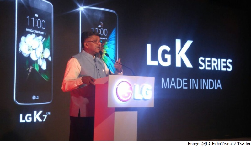 The company will be manufacturing phones at its Noida facility in partnership with GDN Enterprises. The two smartphones - the LG K7 LTE and LG K10 LTE, priced at Rs. 9,500 and Rs. 13,500 respective - were launched by Telecom Minister Ravi Shankar Prasad on Thursday.