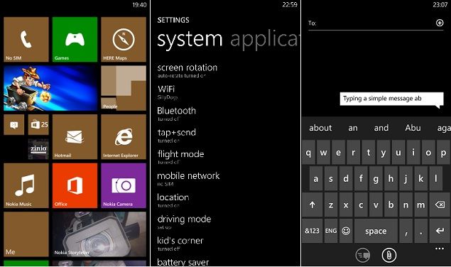 The proposed Action Centre, set to arrive in the Windows Phone 8.1, appears the same way on the screen as the notification windows in Android - swipe down from top of the screen. Four buttons are seen when the menu drops down - Wi-Fi, Bluetooth, airplane and driving mode along with a battery percentage and date.