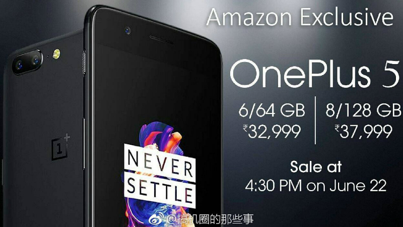 The leak also suggests that the OnePlus 5 will be available on Amazon India at 4.30pm IST on on June 22 i.e. Thursday. In any case, we recommend you to take this information lightly, until the official details are unveiled at the launch event.