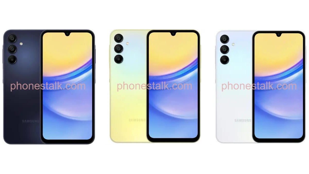 A Phonestalk report has leaked the design renders of the Galaxy A15 4G. The renders show both the back and front panels of the smartphone. The phone is seen in three colour options - black, white, and yellow. It also appears to carry a similar design language as that of the preceding model. Three small circular camera units are vertically arranged on the top left corner of the rear panel alongside an LED flash unit. The display comes with a centred waterdrop notch at the top to house the front camera. As per the leaked images, the volume rocker and the power button are placed on the right side of the handset.