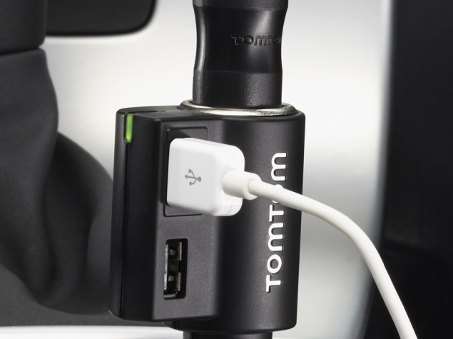 The TomTom High Speed Multi-Charger features two 1.2 ampere USB charging ports for mobile phones and other devices such as MP3 players, and a 2.1 ampere port to charge high-power USB devices such as the iPad or iPhone. In addition, there is a dedicated port for powering 12V in-car devices like DVD players.