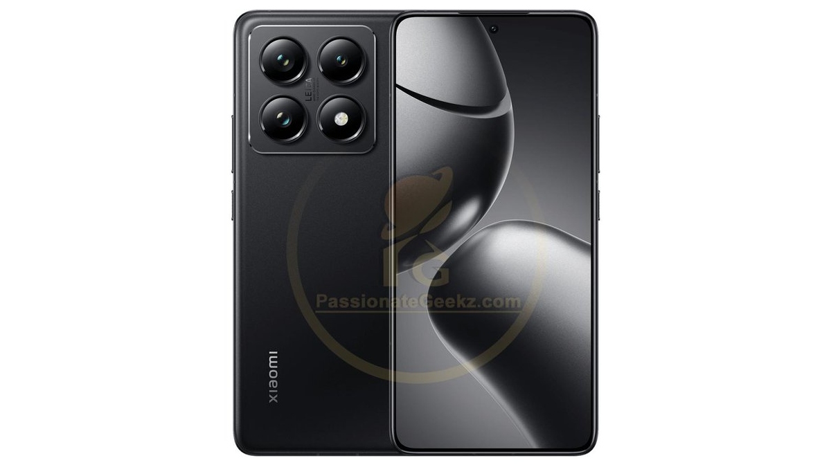 First-look renders of the Xiaomi 14T Pro, courtesy of Passionategeekz, show the titanium black colour variant of the phone. The render shows a centrally located hole punch cut-out and equal thin bezels on display. It appears to have a rectangular camera island with triple individual camera rings and a single ring-like LED flash. The camera unit has Leica branding.