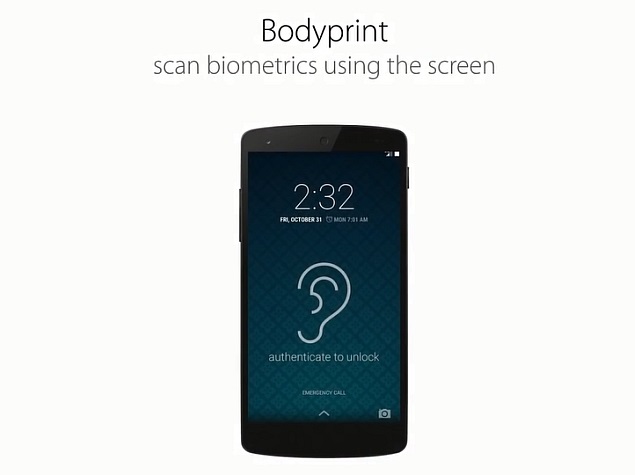 The Bodyprint technology is said to convert the smartphone screens into a "low-resolution but large image sensor" which can identify users' ears, fists, and palms when pressed against the screen, says Christian Holz, Researcher in Human-Computer Interaction at Yahoo Labs on his website.