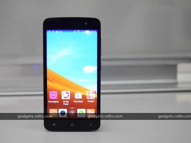 A Micro-USB port sits on the bottom of the phone whereas the 3.5mm jack is on the top. The earpiece, front camera and a supporting flash are lined up above the display. Gionee has implemented a row of capacitive buttons below the screen for navigating through Android OS. The power button and the volume rocker are placed on the right edge, and both these physical buttons offer decent tactile feedback. The primary camera and the flash are on the rear along with the speakers. Removing the cover reveals an orange battery, two slots for Micro-SIM cards and a microSD card slot.