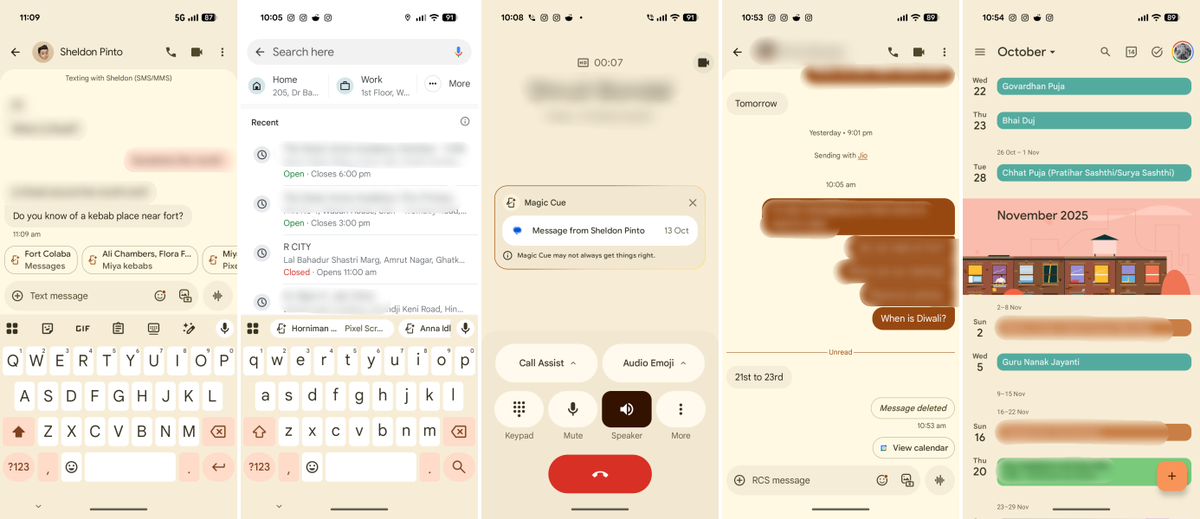 As with every new Pixel smartphone, there are new AI features. Magic Cue works by pulling out useful and relevant data from Google apps like Gmail, Calendar, Messages, Keep notes, Screenshots and Contacts, and surfaces them as information chips precisely when needed. Once activated, it takes about a day (Google claims you should leave it overnight) for Magic Cue to process all of your data in your apps. Once all of the processing is done, the short and precise information chips should show up (with a rainbow outline) when you are typing or searching in the above-mentioned apps.
