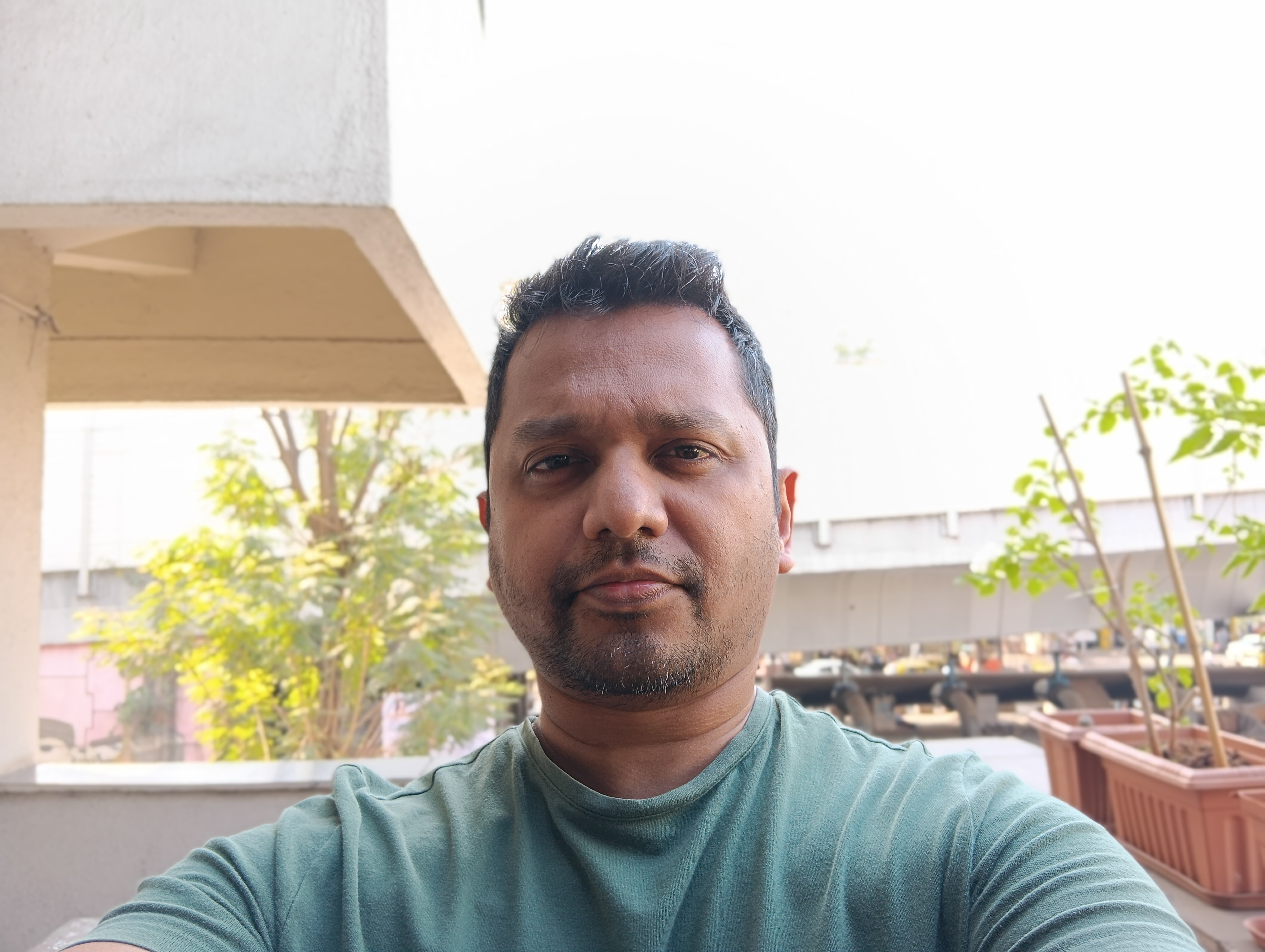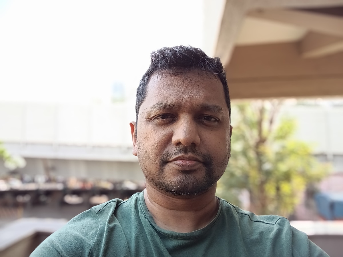 Selfies captured in Auto camera mode are passable and show a decent amount of facial detail, but backgrounds appear flat and lack detail. In Portrait mode, faces look oversharpened, and backgrounds are blown out, appearing mostly white, especially in bright environments. I noticed the same issues when using the rear camera's Portrait mode.