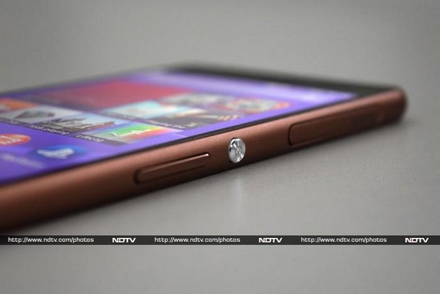 Sony's signature round power button is on the right edge, but it's neither centred nor at thumb height. The volume rocker is right below it, and both are incredibly awkward to reach. Sony is one of the few companies still equipping their phones with dedicated camera buttons, and we found the Z3 easy to hold and use as a camera. The Nano-SIM and microSD card slots are under a flap on the upper right, and the Micro-USB port is under a flap on the left, next to the same magnetic dock connector that we've seen on previous Z-series devices. It still looks as though a patch has been gouged out on one side for the dock connector, but even this is less jarring than it was on the Z2.