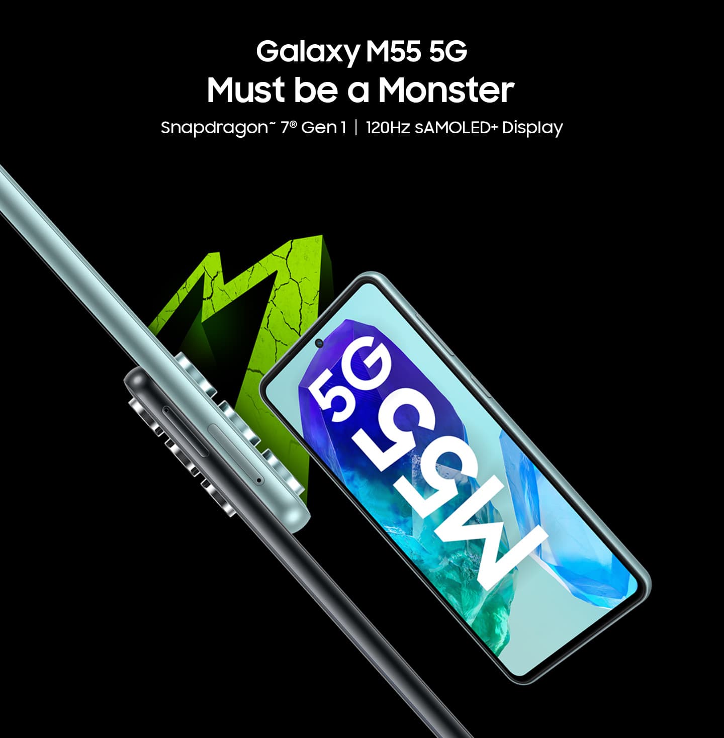 Are you ready to meet the next monster in the smartphone arena? Brace yourself, because the Galaxy M55 5G is here to redefine your mobile experience. With its cutting-edge Snapdragon 7 Gen 1 processor, immersive sAMOLED+ display boasting a 120Hz refresh rate, and a massive 5000mAh battery that can last up to two days, this phone is set to dominate the under 35K segment like never before.