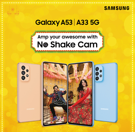 Samsung Galaxy A33 5G, Galaxy A53 5G, and Galaxy A73 5G are available at a starting price of Rs. 24499 this festive season. Not just this, you can also get a Samsung Buds2 at 50% off, along with easy EMI options with Samsung Finance+.