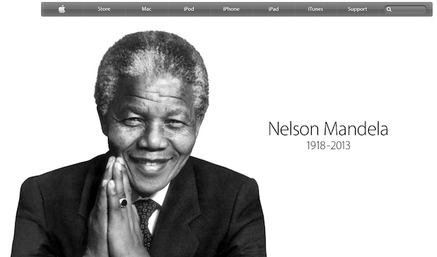 Apple's home page features a picture of Nelson Mandela with the words Nelson Mandela 1918-2013. The page usually features recent Apple launches or any other product that the company may want to highlight.