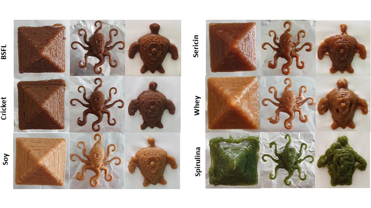 They also experimented with different proteins like sericin, soy, spirulina, crickets, and black soldier fly larvae. Experimentally developed inks were tested for 3D printability and syneresis, with optimised inks obtaining the highest printability and the lowest syneresis.