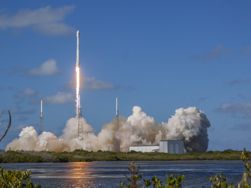 Under blue skies dotted with clouds, the shiny white Falcon 9 rocket blasted off from Cape Canaveral, Florida at 5:40 pm (9:40pm GMT) carrying the Thaicom 8 satellite.