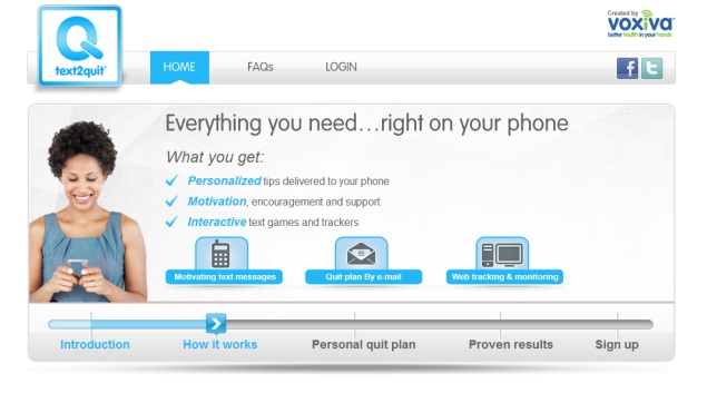 Text-messaging programmes, like "Text2Quit", work by sending advice, reminders and tips that help smokers resist the craving for a cigarette and stick to a quit date.