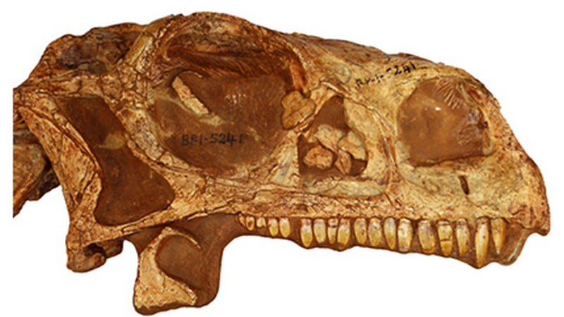 The bones of the braincase are not fully fused, which means that this particular fossil is that of an individual that is not fully grown yet.